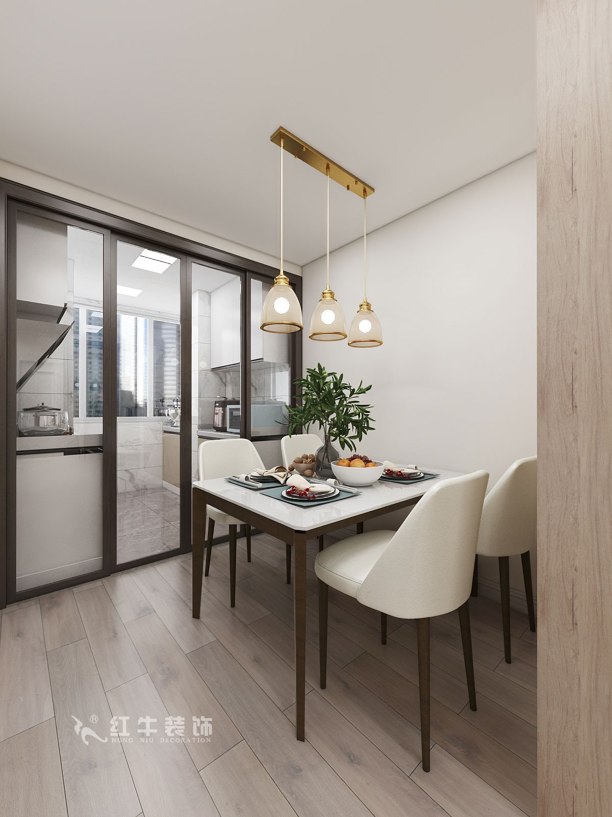 業(yè)主是一對80后,房子裝修就是為了小孩上學幾年,要求簡約大方,布置很規(guī)整沒什么大的改動,主要把原先餐廳的區(qū)域留開了,把餐廳放到了廚房區(qū)域,廚房布局更緊湊一些,再有就是墻面的一些軟裝配飾。