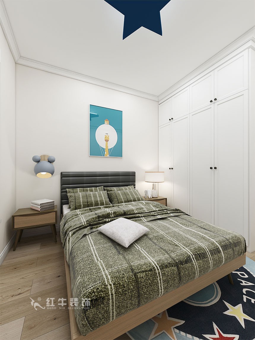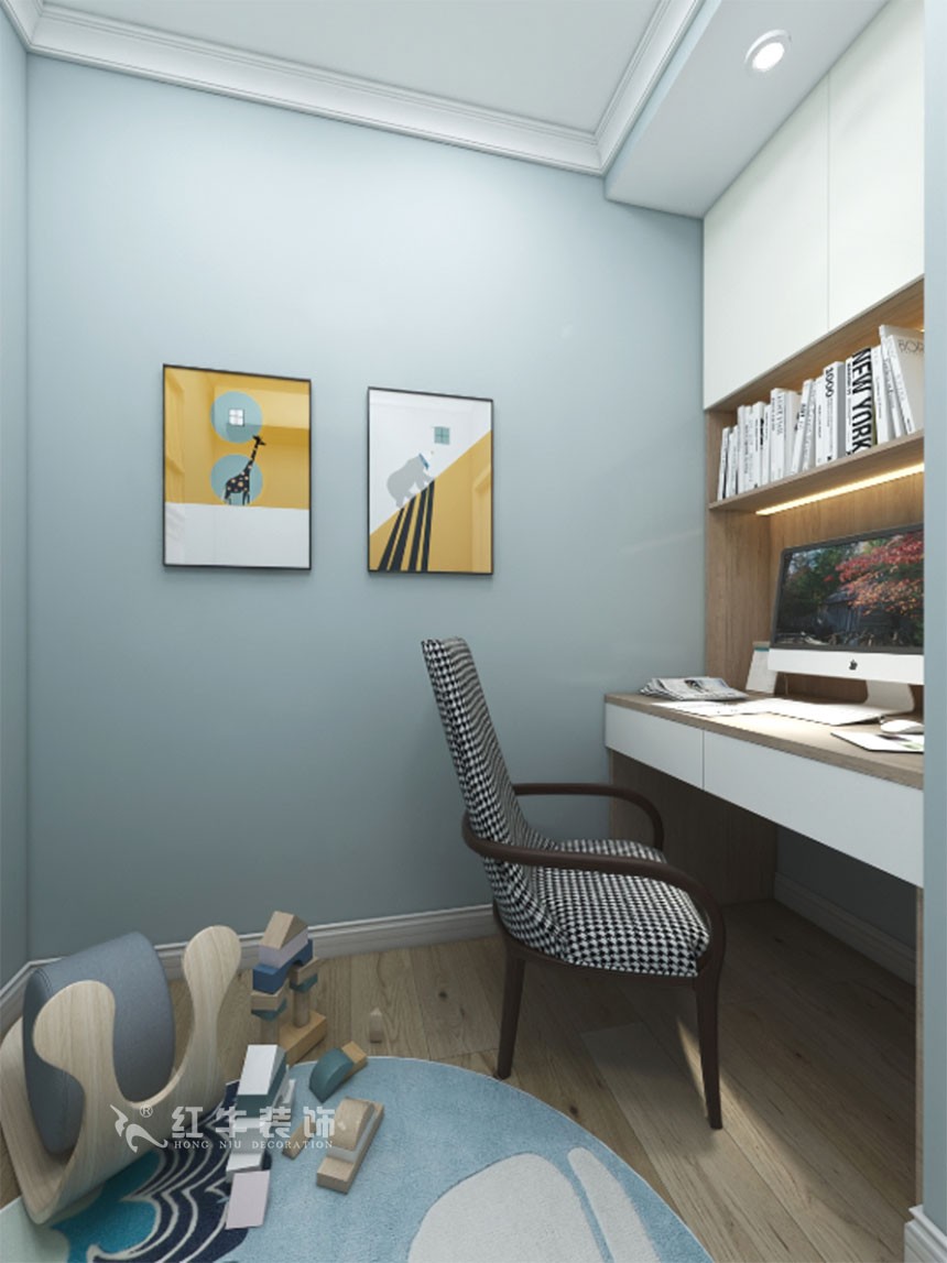 整體風(fēng)格簡約,白色和木紋色營造出溫馨的生活氣息,次臥室設(shè)計了組合柜,既有學(xué)習(xí)的區(qū)域同時也兼顧了休閑空間。