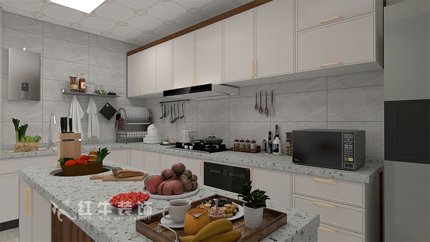 本案是四室兩廳兩衛(wèi)一樓帶院子的戶型三代人居住,因?yàn)橹饕歉改钢?,風(fēng)格定義是新中式,以現(xiàn)代美感來塑造空間氛圍,時(shí)尚與古典相互融合,有內(nèi)有外,內(nèi)外兼修。整體空間做了調(diào)整,打開入戶右邊送的設(shè)備平臺(tái),設(shè)計(jì)為書房,平時(shí)坐在書房看書的時(shí)候,也可以一覽院子里的美景,進(jìn)入大門后,做了一個(gè)隔斷分區(qū),分割一個(gè)入戶門廳,提高利用率和私密性,主臥室的衛(wèi)生間也做了調(diào)整,改變以前的落地窗,一分為二,衛(wèi)生間的功能/私密性都不影響的情況下,還多了一個(gè)儲(chǔ)藏室。出房間也做了調(diào)整,打掉所有的非承重墻,廚房中間做了中島臺(tái),平時(shí)可以用作早餐臺(tái)逢年過節(jié),大家聚在一起包餃子,其樂融融,生活氣息濃厚。