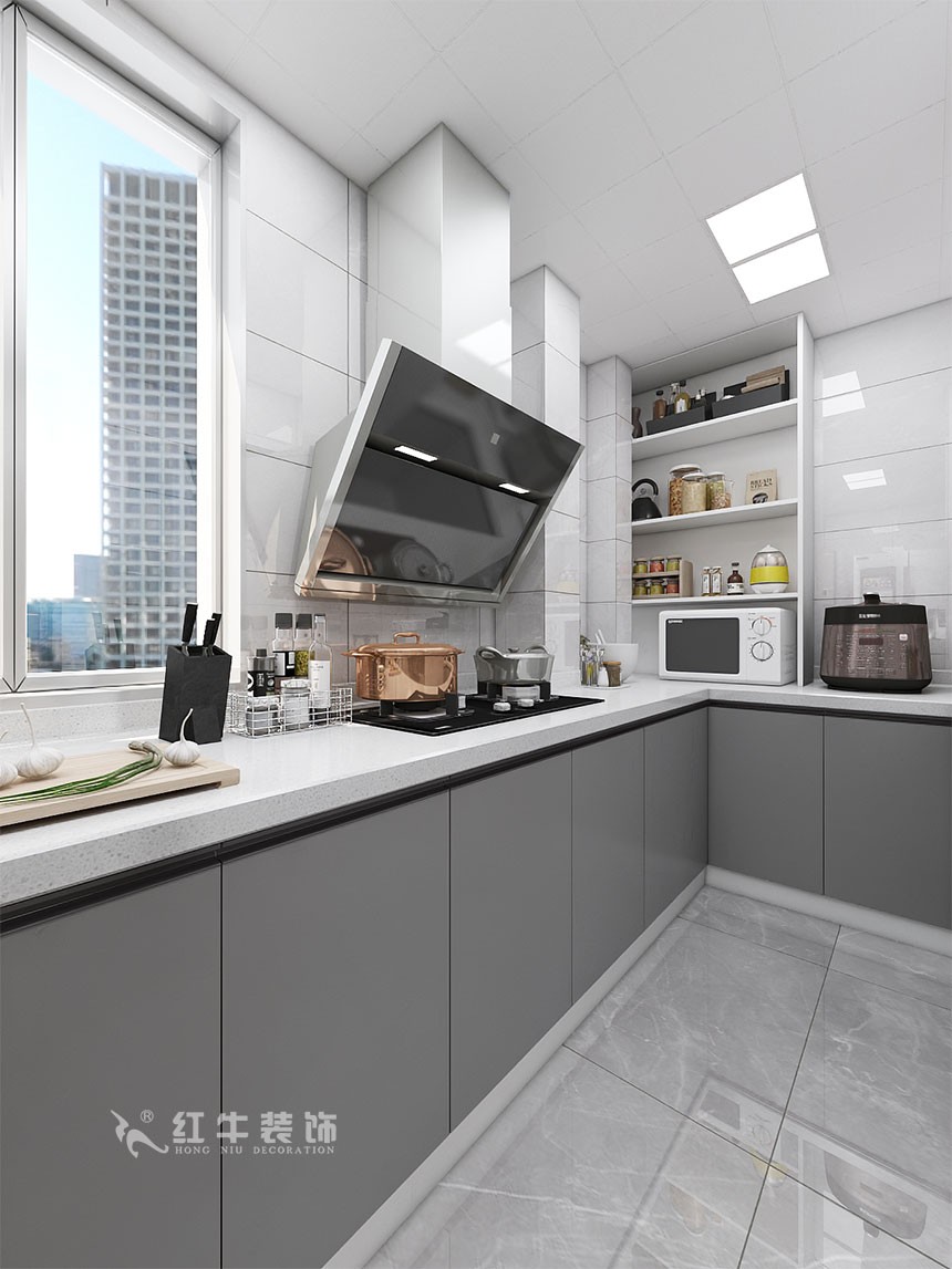 北陽臺隔開,從廚房打通出去,實(shí)現(xiàn)了廚房使用面積的增加,解決了廚房收納的問題。