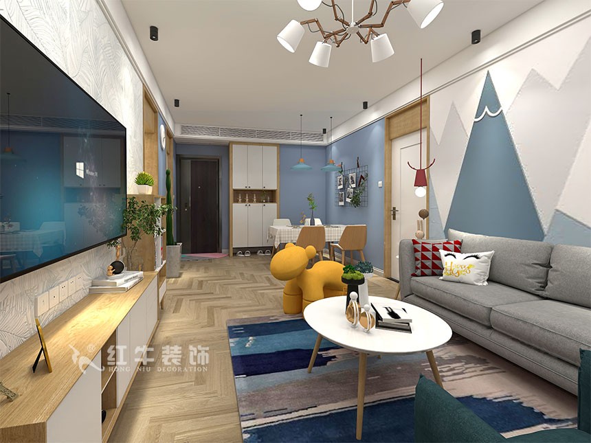 本案為90后小兩口的婚房,因?yàn)樽稍儺?dāng)中對裝修風(fēng)格在現(xiàn)代風(fēng)格和北歐風(fēng)格猶豫不決,進(jìn)過溝通和初設(shè)計(jì)后,與業(yè)主詳細(xì)的溝通便將整個家的裝修風(fēng)格確定為北歐風(fēng),清新又舒適。在整體設(shè)計(jì)上沒有過多的用造型去堆砌,對空間的規(guī)劃上,微調(diào)結(jié)構(gòu)運(yùn)用色彩,提升每個空間的舒適度,豐富空間層次感,提升每個空間的最大利用,互不沖突,擁有獨(dú)立的美感,組合起來又格外地和諧動人。
