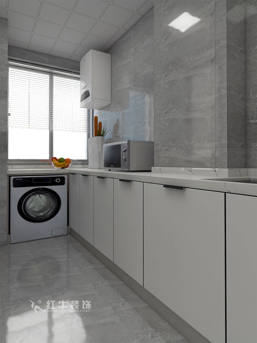 戶型優(yōu)化:整體設(shè)計(jì)上,我們局部調(diào)整空間布局,讓空間利用更高,通過修改衛(wèi)生間2側(cè)墻體的尺寸,讓主臥安放衣柜的同時,還能放置一張一米八床。廚房與衛(wèi)生間的墻體內(nèi)移,讓廚房的過道有了90公分的過道空間,可以在廚房自由操作了。并且這兩處改動,也不影響衛(wèi)生間的空間。