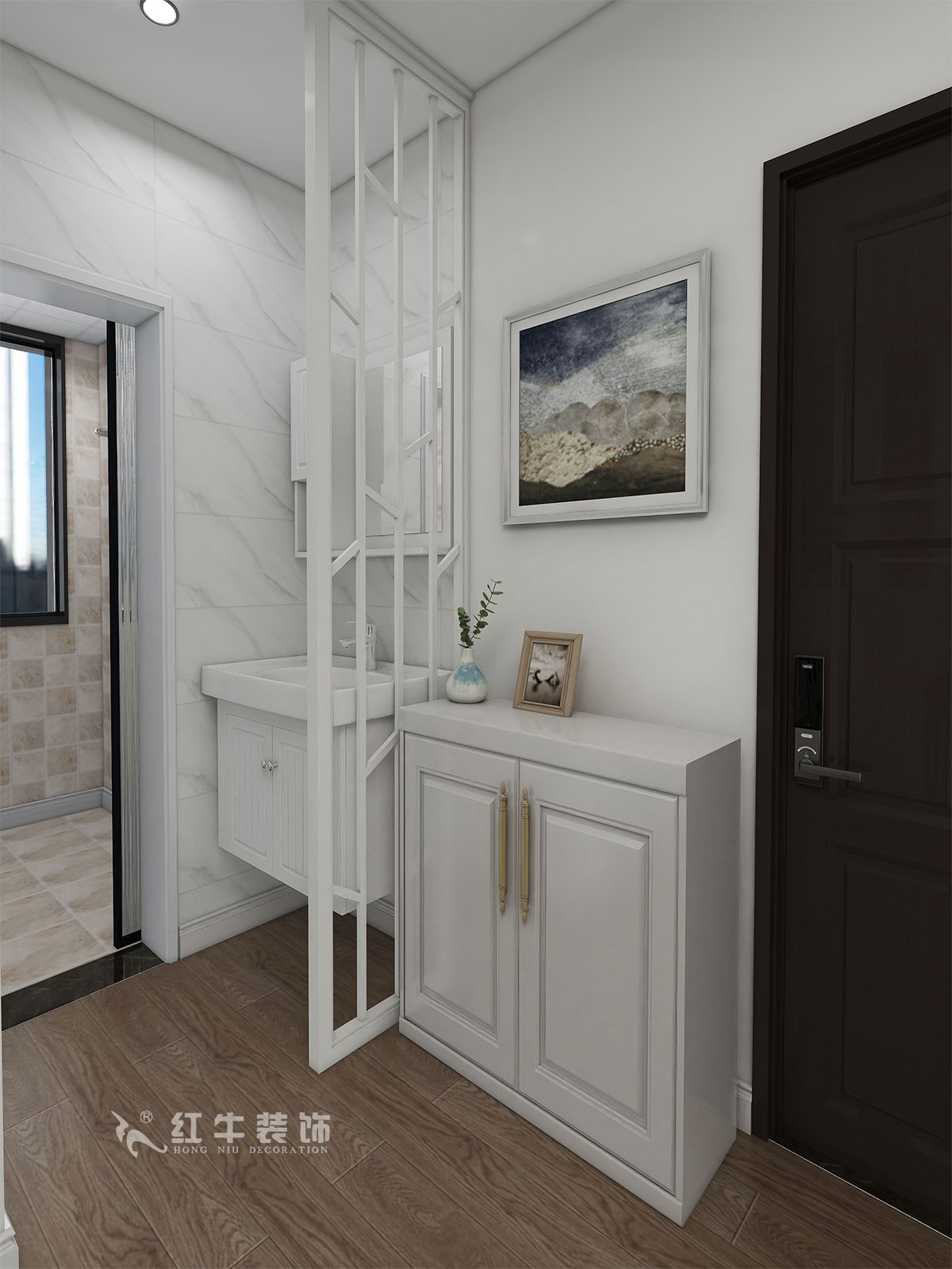 本戶型是兩室一廳一衛(wèi)的戶型,業(yè)主是一位退休阿姨,和女兒母女倆居住。房子對于會客的需求不是很大,但是母女兩人衣物包包等物品比較多,對于儲物的要求比較高。同時對環(huán)保品質(zhì)要求比較高。在比較多家公司后選擇紅牛裝飾。