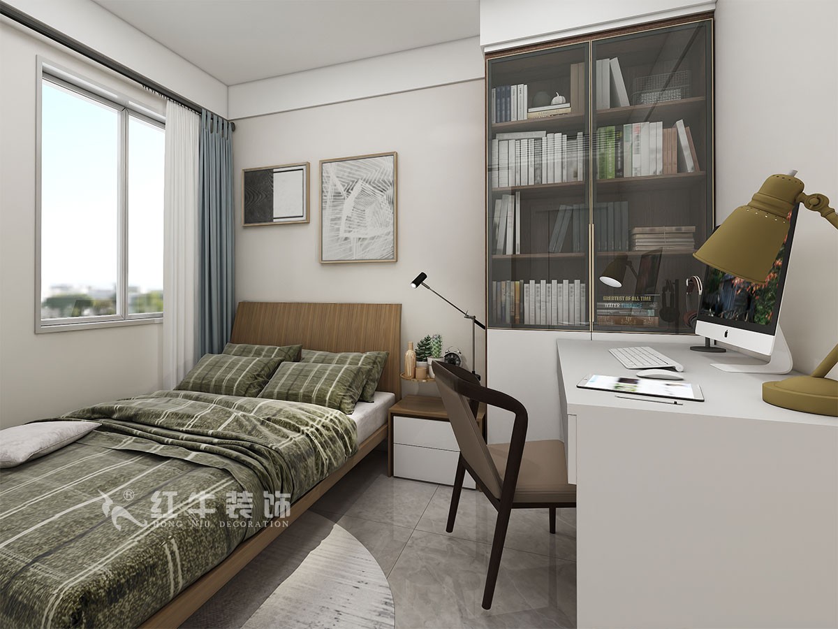 其他空間布局按照平時(shí)習(xí)慣稍微做了調(diào)整,配色上使用大面積留白,局部撞色(冷色),顯出空間的層次感。