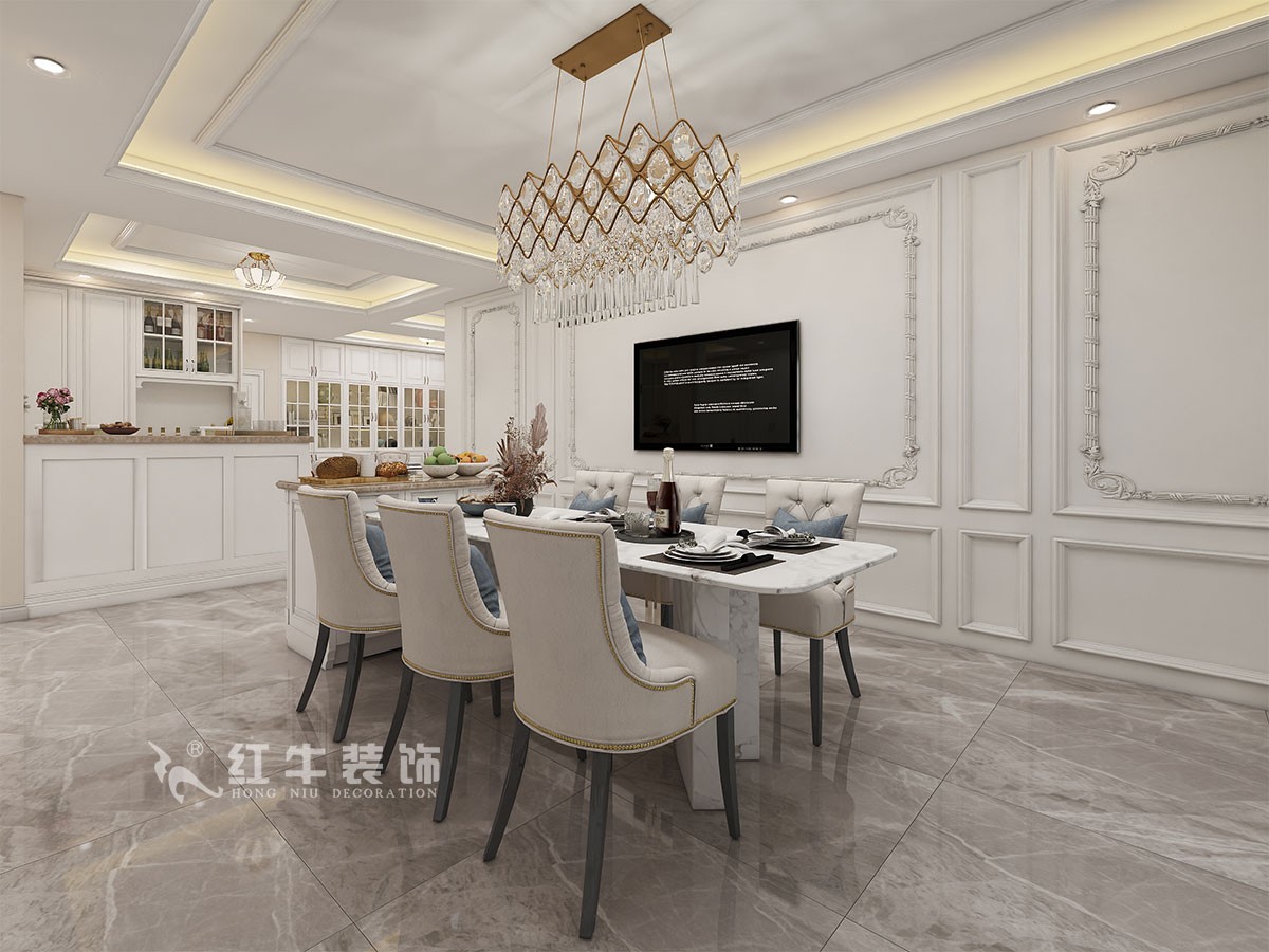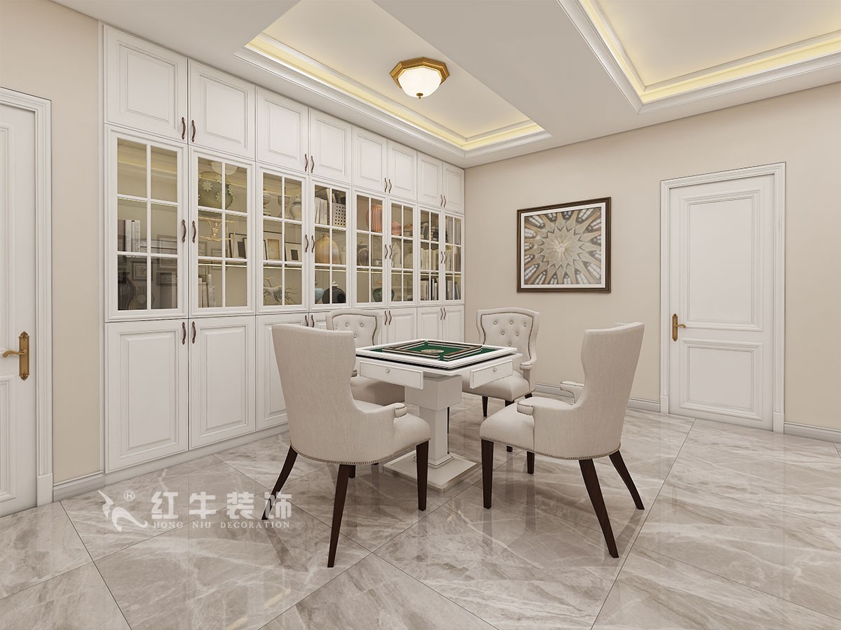 此房屋裝修規(guī)劃是以后期業(yè)主家庭聚會(huì)的房子,業(yè)主對(duì)美要求有自己的見解,希望未來(lái)的房子有顏色,有氣質(zhì),最終確定了美式,而本案在設(shè)計(jì)時(shí)其特色是將設(shè)計(jì)的元素、色彩、照明、原材料都體現(xiàn)美式的大氣,但是對(duì)材料的色彩質(zhì)感要求很高。因此,無(wú)論總墻面,還是頂面都用美式線條做裝修,配合家具的曲線,讓整個(gè)空間顯得柔美。