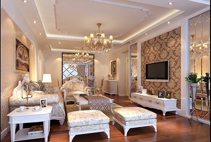 歐式的居室有的不只是豪華大氣,更多的是愜意和浪漫,暖色的基調(diào)配合純白的家私擁有無盡的舒適感。作為簡歐來說,處處曲美背景的走邊線條,無需花哨繁瑣。點(diǎn)線面稍加一些弧形更貼近于自然,并融入了比如羅馬柱,拱門等非常有代表性的歐式元素,軟裝配飾的色調(diào),與背景的硬裝相互共鳴,映入大氣的柔美。背景墻的大塊拼花墻紙,大氣凜然,凸顯低調(diào)的奢華。餐廳邊整面的車邊銀鏡增加了采光的同時(shí),又將戶型空間得到了無限的延伸,點(diǎn)點(diǎn)的精致,源于對細(xì)節(jié)的處處考量,歐式吊頂金燦燦的光芒,灑滿家的每個(gè)角落。沙發(fā)背景的造型與羅馬柱拱形的門廊,相互映襯,統(tǒng)一的視覺感讓設(shè)計(jì)空間協(xié)同舒適。