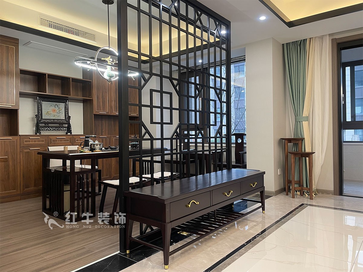 新中式風(fēng)格非常講究空間的層次感,空間裝飾多采用簡(jiǎn)潔硬朗的直線條,直線裝飾在空間中的使用,不僅反映出現(xiàn)代人追求簡(jiǎn)單生活的居住要求,更迎合了中式家具追求的內(nèi)斂、質(zhì)樸的設(shè)計(jì)風(fēng)格,使新中式更加實(shí)用、更富現(xiàn)代感。
