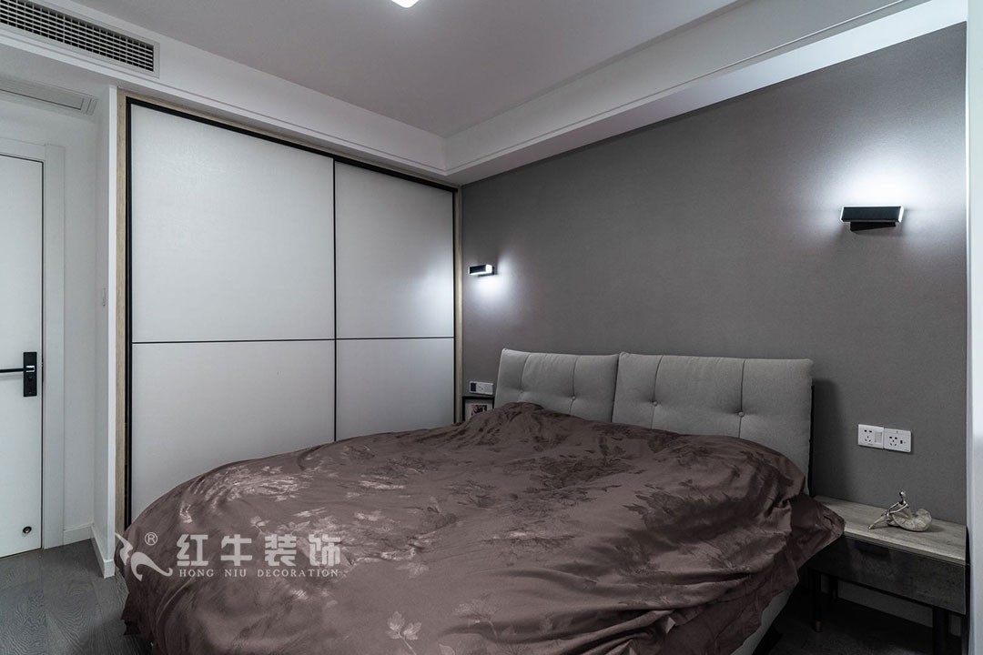 主臥任然走極簡(jiǎn)的線條感,搭配黑色壁燈,給人以休閑自在的視覺感受,心情也自然就舒緩很多。