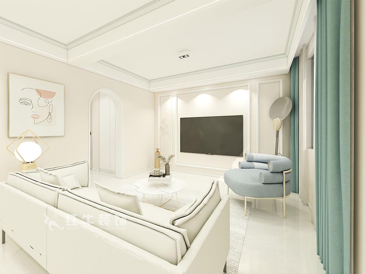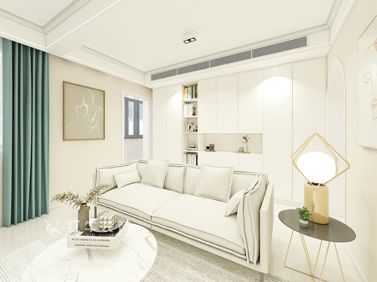 本案是個老房子重新裝修,客戶是想做婚房裝修,喜歡奶油小清新的風格,結構上是80年代的房屋,老房子結構,結構上基本上不能改動,客廳縱深比較長,為了動線和餐廳的采光,在客廳門的另外一邊開了一個門洞,使得客廳的動線更方便,整體乃奶油色加白色的石膏線條,現(xiàn)代的有創(chuàng)意的家具,問題溫馨簡潔。主臥背景墻選用白色石膏線條和地面灰木紋的地板作為整體的襯托,讓主臥室充滿了寧靜又不是溫馨。