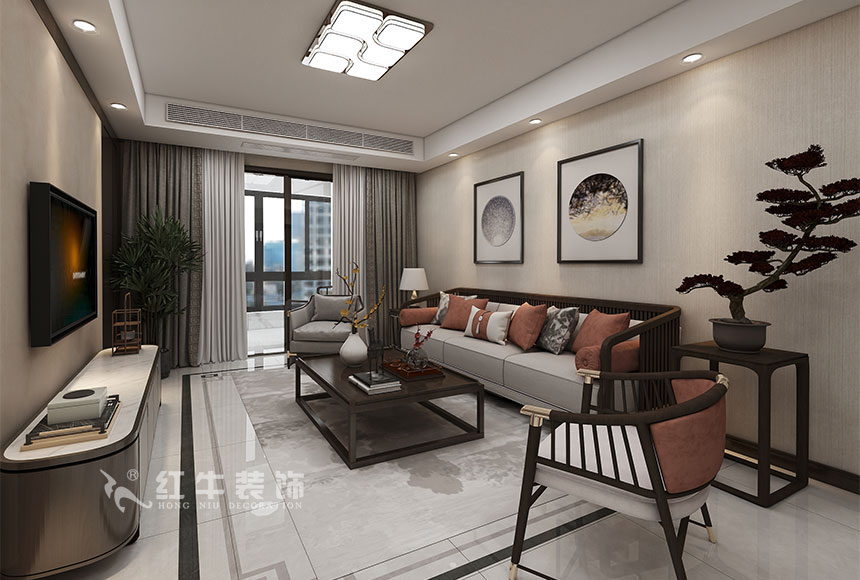 南京雨花臺區(qū)宏圖上水園121平新中式風(fēng)格裝修 -